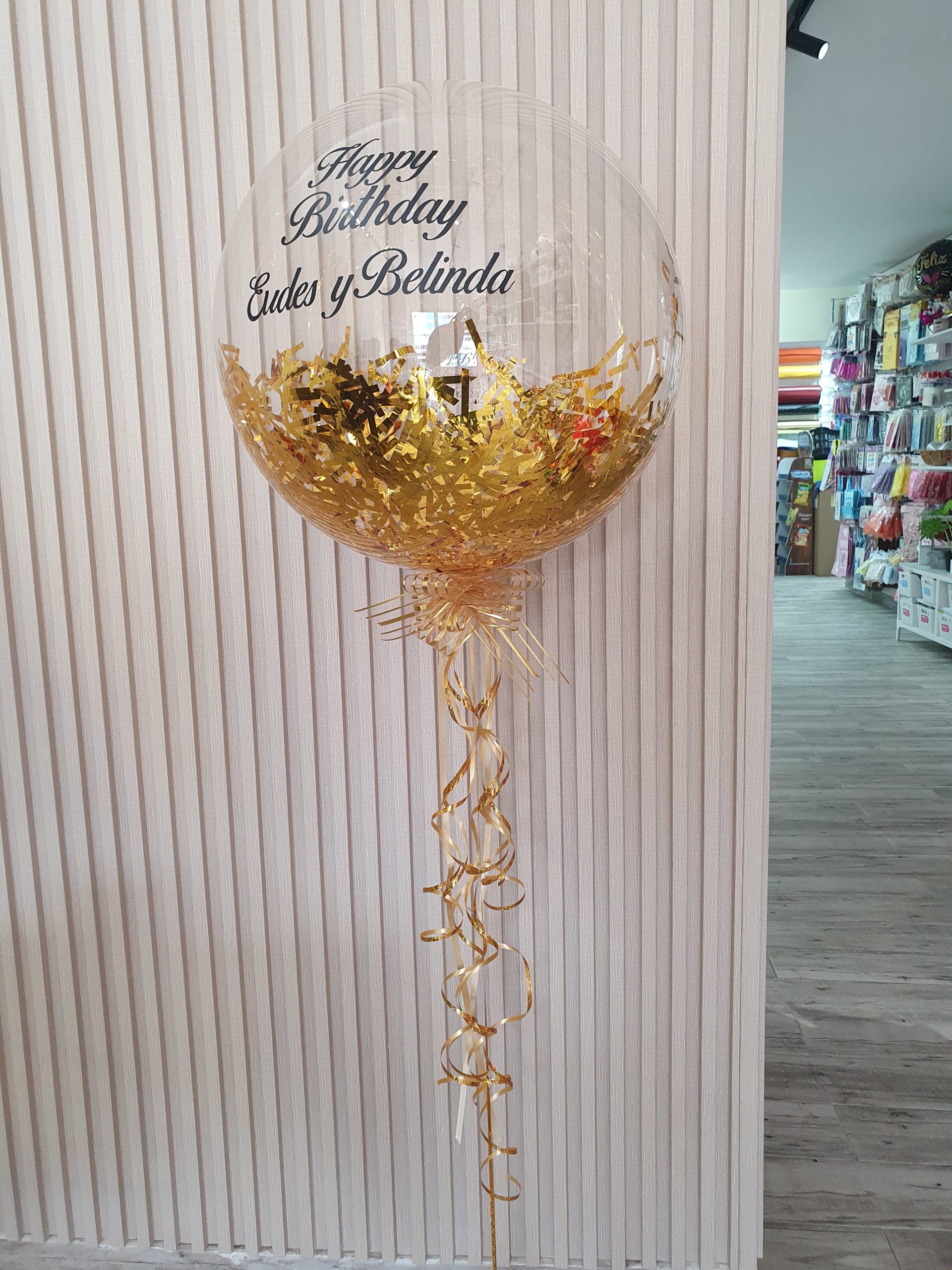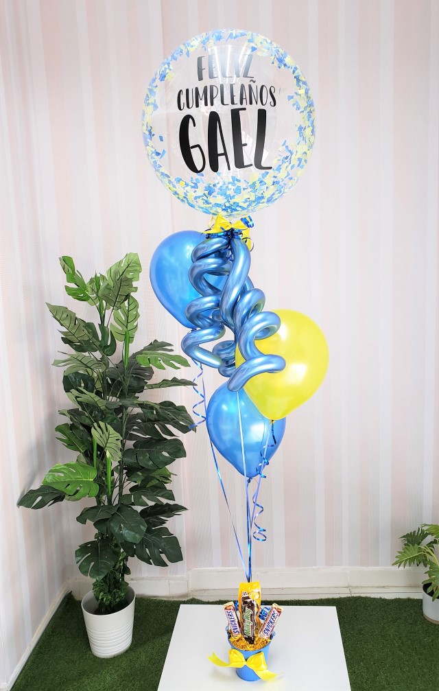 Bubble con Helio Personalizado + 3 globos 10″ y pesita.